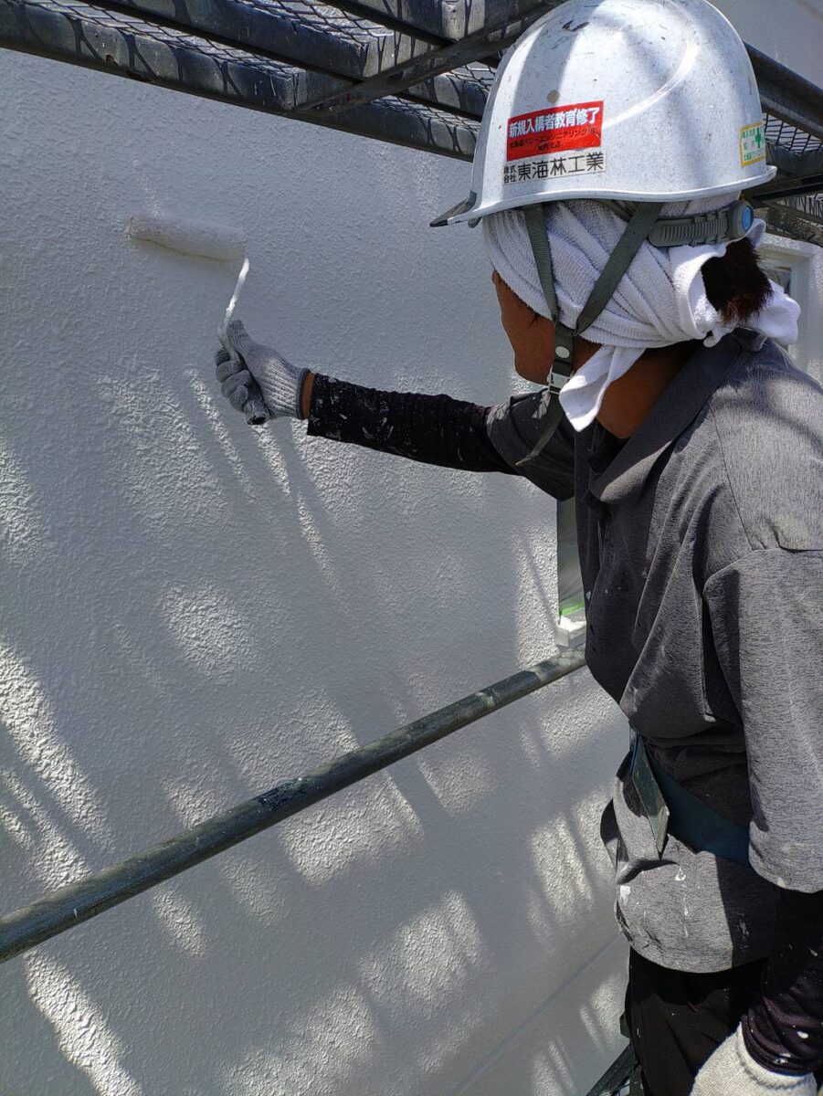 下塗り~上塗りまでホワイトなので夏の西日を浴びると塗り重ねが分かりずらく慎重に塗り残しが