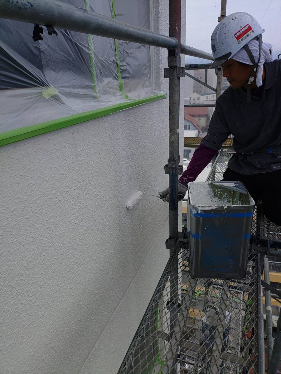 凹凸ながくフラットな建物なので面積は大きいですが非常に塗りやすい外壁でした。