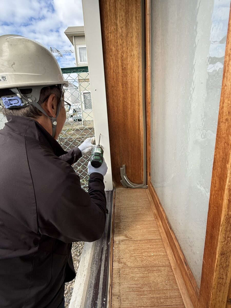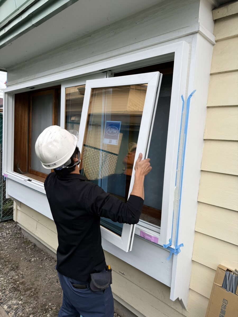 居間側の窓は木枠からサッシに変えて欲しいとのリクエストでパートナー企業である石川アルミさんにお願いしアルミ製サッシに交換致しました。